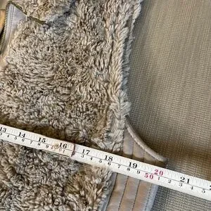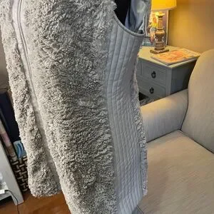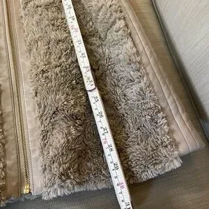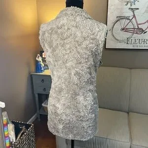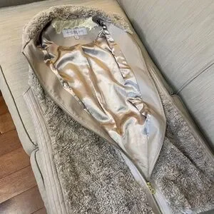 Marc New York - Andrew Marc, faux fur/faux leather women's vest, sz M Fashionable and elegant! Soft, taupe shades of faux fur makes this vest cozy but stylish! Accented with goldstone zipper and soft, silky lining. Unfortunately the INSIDE faux leather collar area is peeling! I sent it to be cleaned and it came back like this (see pics), and is priced accordingly. Otherwise in great condition with no signs of this happening anywhere else on vest! So...not visible while wearing. Could be fixed if bothersome. Check out my other items for bundle discounts!