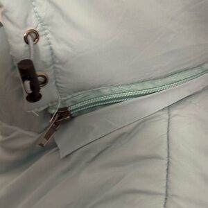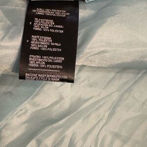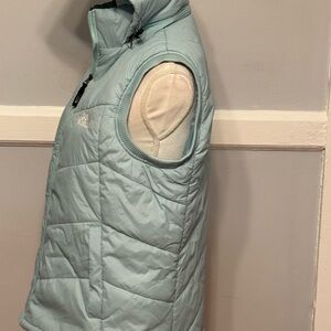 The North Face NEW Light Blue Hooded Zip Up Girl’s Cozy Comfy Ribbed Down Puffer Vest. Two side zip up pockets. Zip off hood. Ribbing on arms for extra warmth. 100% polyester. Perfect for the colder months. Vest is too small to be a women’s large, listed as a Junior’s large. NWT.