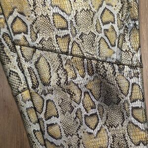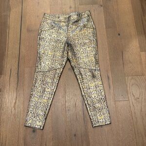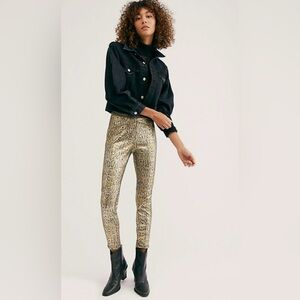 Free People $98 Rio Snakeskin High Rise Skinny Pants Gold Metallic Large EUC