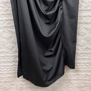 Slinky Black Ruched Dress Cowl Neck Maxi Medium Adjustable Spaghetti Straps