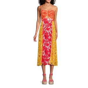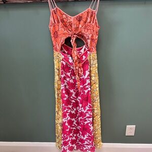 REISS Isla Floral Print Maxi Dress Orange Pink Yellow Cutout Tie Waist