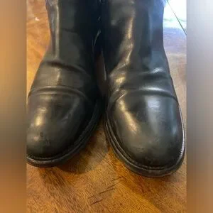 The Prada boots show signs of wear, including scuff marks on the upper leather and scratches on the tips. Please see photos for reference.