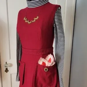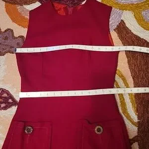 Vintage Red Stiletto Inc. brand union made dress is so PERFECT for valentines or just anyone who loves red ♥️ No material tags but feels like a wool or woven blend. Talon zip is a tad sticky but no issues going up and down. Hook and eye at top of back zip.