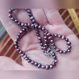 Vintage genuine purple pearl necklace with a sterling silver clasp, good vintage condition, non-smoking, sanitized, hallmarked .925, very unique genuine pearl necklace.