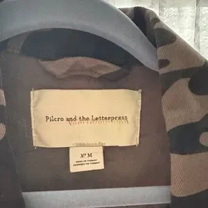 Pilcro and the Letterpress Camouflage Jean Jacket with Red Floral Design