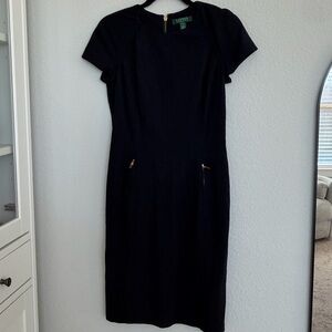 Lauren Ralph Lauren Blue stretch knit fitted sheath dress with leather zippers