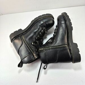 NexGen Men's Black Leather Lace-Up Motorcycle Biker Boots Size 8 Vintage