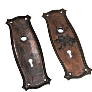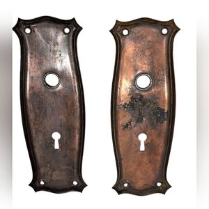 (2) Antique Victorian Copper Plated Keyhole Escutcheons, Door Backplates