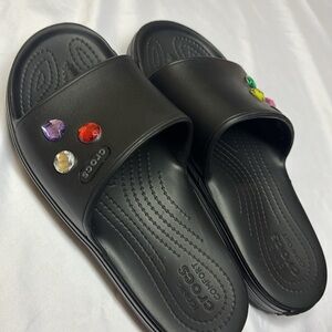 CROCS Women's Black Mules with Colorful Gem Accents