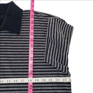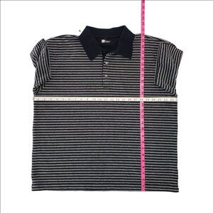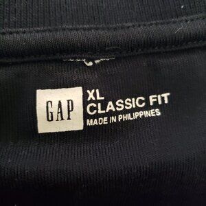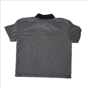 Classic GAP Classic Fit striped polo shirt in black and gray, men’s Extra Large (XL). This piece is from an earlier Gap era known for durable 100% cotton construction and a comfortable, traditional fit.