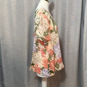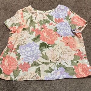 Joie Linen Blouse Style Short Sleeve T-Pastel Floral-Side Button Detail-XL-EUC