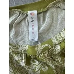 Soft, comfortable Daily Practice dress in a beautiful green paisley print with a relaxed, flattering silhouette. Features a gathered elastic waist, short puff sleeves, and an easy pull-on style that's perfect for everyday wear.