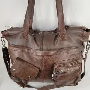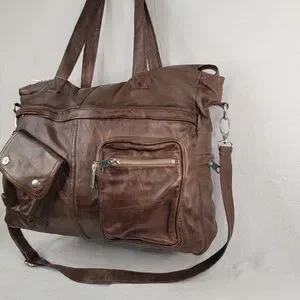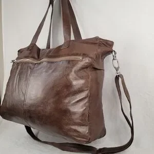 Brampton London Large Soft Leather Slouchy Utility Tote Bag Oversized Satchel