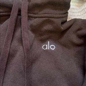 Soft chocolate brown hoodie with sleek drawstrings. Features ALO logo in silver on the chest.