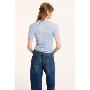 Please see seller notes below. The FRAME Smocked Polo offers a refined silhouette with its tailored structure and subtle detailing. Style it with high-waisted trousers and loafers for an effortlessly polished daytime ensemble. Materials and Measurements Blue (55% Silk, 45% Cotton). Tops. Collared. Short sleeves. Front button closure. Shoulder to hemline length: 19.5". Imported. SELLER NOTES: Pre-loved from Rent the Runway.