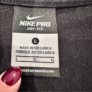 Nike Pro shirt with Dri-FIT. Classic black style. Perfect for workouts or for your outside run in transitioning weather