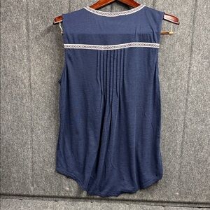 Style & Co. Navy Sleeveless Blouse with Embroidery