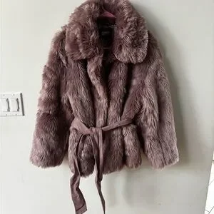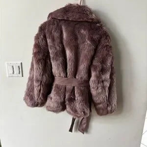 Luxurious teddy jacket with a soft, plush texture. Features a stylish faux leather belt for a tailored look. Ideal for cozy elegance.