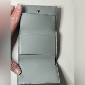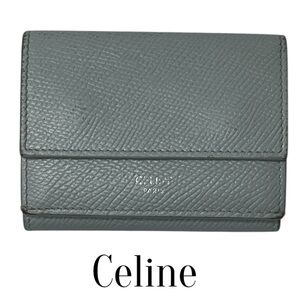 Celine Small Trifold Wallet in grained calfskin leather in a light gray color