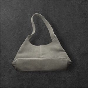 Keywords: gray suede, hobo bag, chic, minimalist, everyday bag, designer, luxury, fashion, accessory, structured, versatile