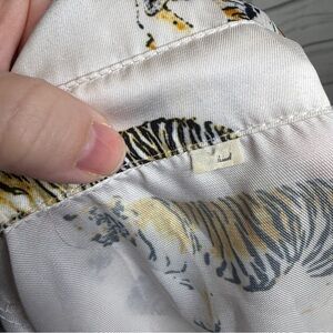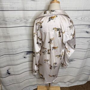 Elegant silk shirt with a tiger print design. Features a button-up front and classic collar.