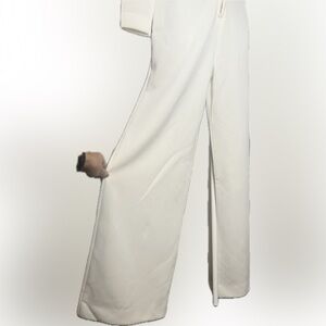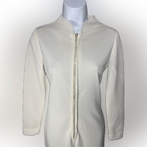 Vintage 70s Leslie Fay Cream Polyester Bell Bottoms Jumpsuit with Rhinestones
