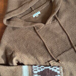 Earthbound Baja Style Hoodie Sweater Brown Knit Boho Size S