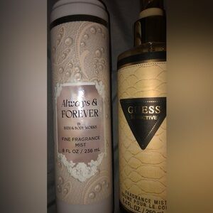 **Read fully** These are not new nor full! The 2 BBW sprays are about 3/4 full. I added a photo to show where- the guess one is the lowest- these smell great- I just don’t wear anymore!! 5 pack stickers (just for fun) ❤️ these do not have their lids/caps! The face moisturizer is a glass jar! It’s brand new- I only removed the little white cardboard thing that was over it- it’s like a cold gel and I just don’t use that kind- it hasn’t been used.
