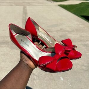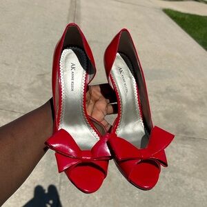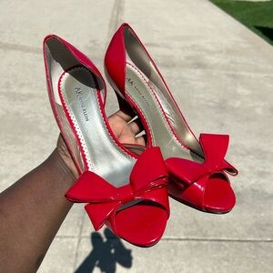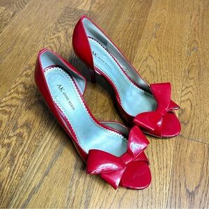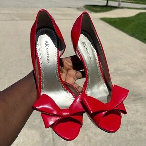 Chic red heels by Anne Klein. Features a stylish bow accent. Perfect for any occasion.