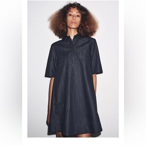 This elegant black denim dress offers a chic and versatile look for any occasion. Perfect for a stylish day out or a casual evening event.