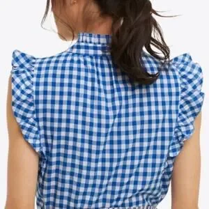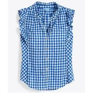 NWT Draper James blue gingham sleeveless ruffle detail button down blouse top
