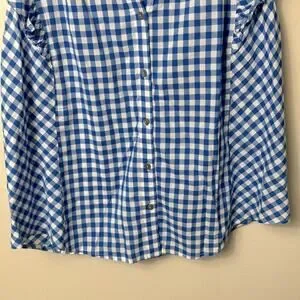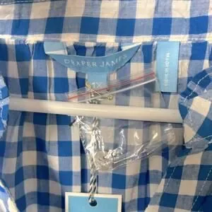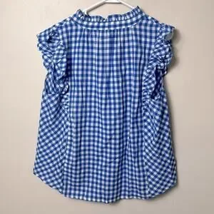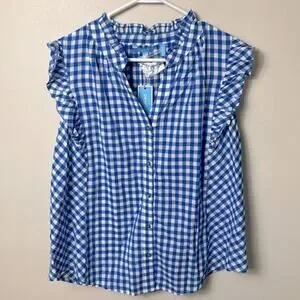 NWT Draper James blue gingham sleeveless ruffle detail button down blouse top, Size 1X. New with tag!