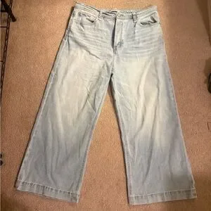 ▪️Style: High-rise, cropped wide leg silhouette, braided belt loop detail, zip and button fly closure, classic 5 pocket fabrication, minor stretch