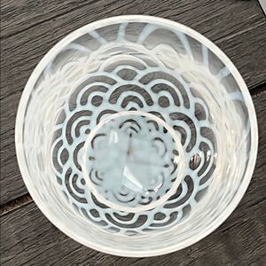 This is a uniquely Japanese cratted glass. The milky-white romantic pattern is not painted on the glass. The pattern is created by the ephemeral yet beautitul colors of the opal glass itself, which is created by the artisan's skillful control of temperature during the molding process.