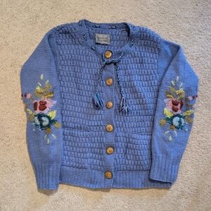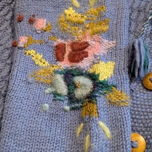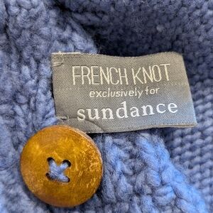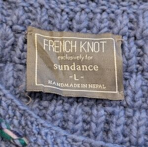 French Knot exclusively for Sundance. Women's size Large cardigan. Handmade in Nepal. 100% wool. Beautiful embroidery on both sleeves.