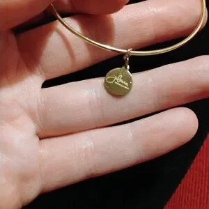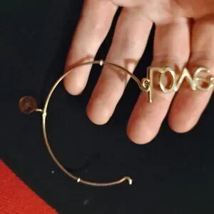 A gold toned Openable "Love" bangle bracelet. Labeled Jilzara.