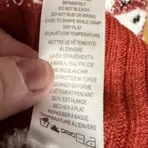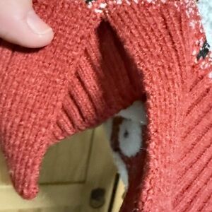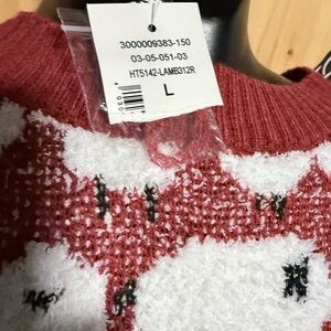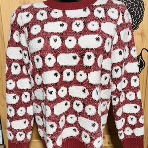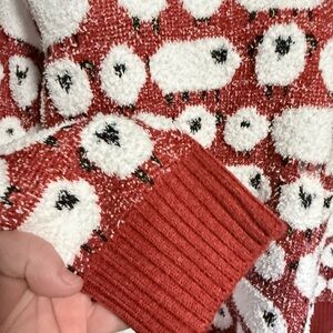 Stylish knit sweater with a textured sheep repeated design. Features rich red and soft cream colors. Brand new with tags never worn. Sweater is super cute and soft. Long sleeve, with red ribbed cuffs. Hem is a split hem so it lays flat!