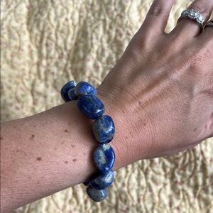 Elegant blue stone beaded bracelet perfect for any occasion. Add a touch of color to your outfit.