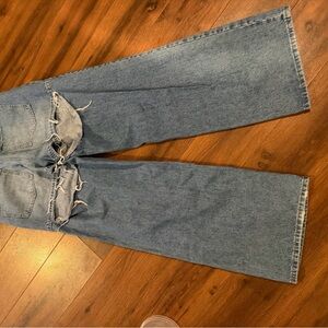 Forever 21 Blue Distressed Wide Leg Jeans