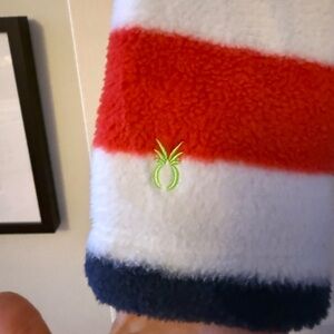 Dudley Stephens Kaki Pullover in Sherpa Fleece Camp Stripes, Medium