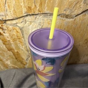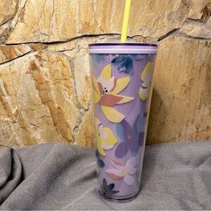 Starbucks Magnolia Floral Purple Tumbler Cup with Yellow Straw (24 oz)