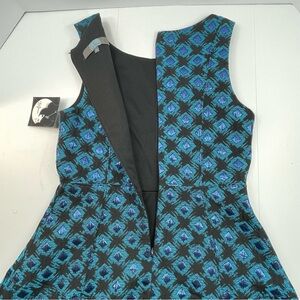 NWT EVA FRANCO Sleeveless A-Line Dress Black Blue Metallic Shimmer Lined Size 10