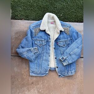 VINTAGE LEVIS SHERPA TRUCKER DENIM JACKET RED TAB 1970S SIZE 40