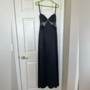 Chic black chemise with delicate lace details. Features adjustable straps and a flattering fit. Super sexy maxi dress, perfect for valentines day or any occasion.
