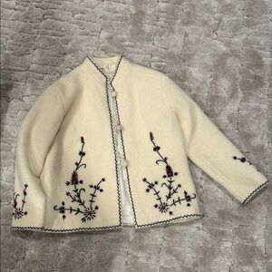 VINTAGE Embroidered Wool Cream Jacket with Floral Design