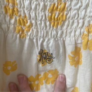 Vintage Roxy Maxi Dress Yellow White Brown Floral Smocked Cotton Sundress Size S
