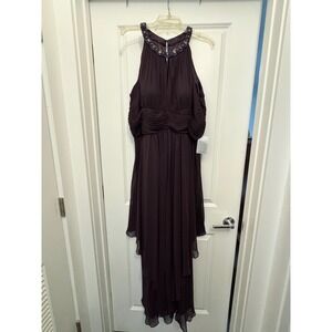 Eliza J New York Purple Beaded Halter Neck Chiffon Gown Women 16W