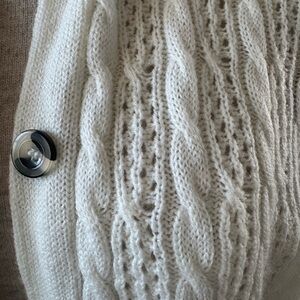 Haband! Size Large Cozy White Cable Knit Button Down Cardigan Sweater Cottage