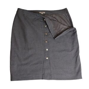 LOFT Grey Black Houndstooth Button Front Lined Straight Skirt Size 12