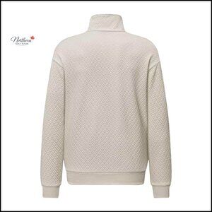 Brand new with tags, this stylish quarter-zip sweatshirt offers a comfortable and versatile layer perfect for casual days, outdoor adventures, or relaxing at home. The waffle texture is breathable and durable, providing a modern look that's easy to wear.